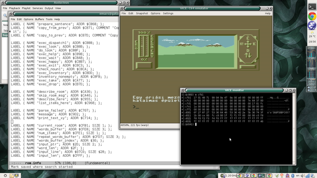 Az hiányzott a legkevésbé, hogy még mindenféle mesterséges szabállyal is nehezítsem a dolgomat, úgyhogy azt hamar eldöntöttem, hogy semmiképpen nem lesz az a cél, hogy úgymond "korhű" módon csináljam a visszafejtést; mármint hogy olyan eszközökre korlátozódva, amik egy igazi Commodore 64-en '89 körül a rendelkezésemre álltak volna. Ehelyett a Vice emulátor debug-eszközeivel vágtam neki a feladatnak.
