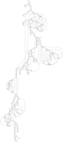 By the way, for some eye candy, here's what the map looks like. The left-hand side shows the original map. Rooms 8 to 13 and 70 to 76 comprise two of those super annoying mazes that old text adventure games were keen to include. The right-hand side shows the map of The Revenge Episode 1, i.e. my cut-in-half HomeLab-2 version. Simplifying the episode one maze didn't really save much space since all the constituent rooms use the same text descriptions, but I think skipping them simply makes the game better.